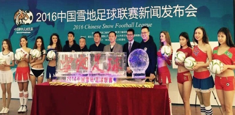 由黑龙江省体育局、黑龙江省足球协会主办的首届中国雪地足球联赛,于2016年1月16日至17日在哈尔滨冰上训练基地展开厮杀。黑龙江龙体科技有限公司董事长张强、黑龙江龙体科技有限公司总经理史谦出席了新闻发布会。